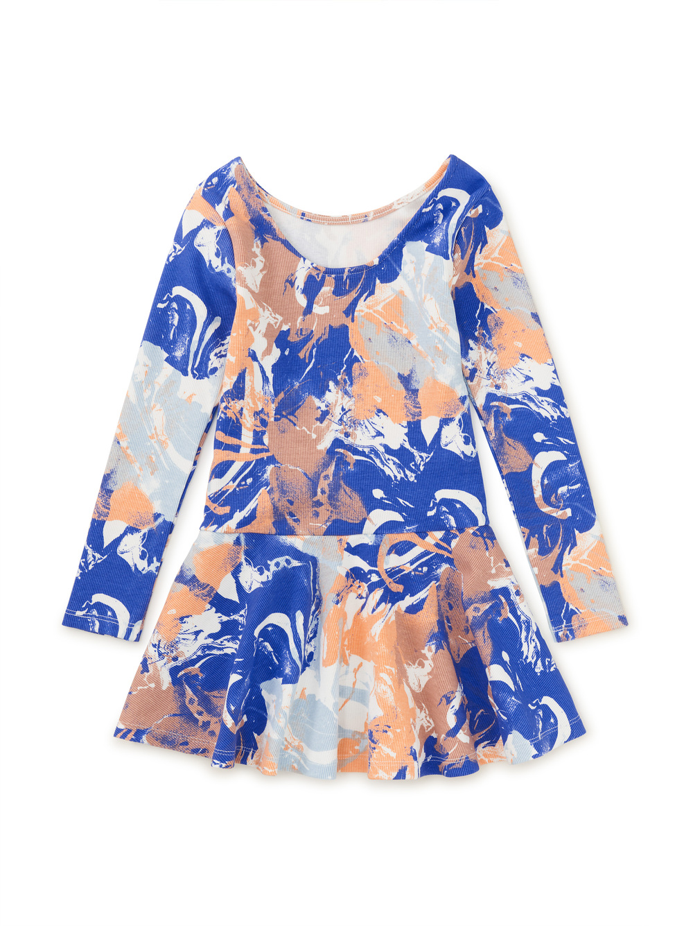 Colorful and swirly, this two colored marble print is perfect for play! We've taken our favorite skater dress and made it in new, stretchy ribbed fabric.