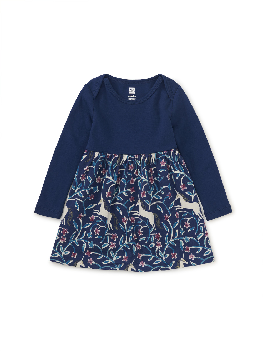 Istanbul's spectacular floral gardens inspired this hand-drawn graphic. Our two-tone long-sleeve dress is picture-perfect for holiday gatherings. The bodice is 100% cotton rib, and the skirt is 100% cotton jersey. An envelope neckline makes for easy on and off. It is below mid-thigh length.