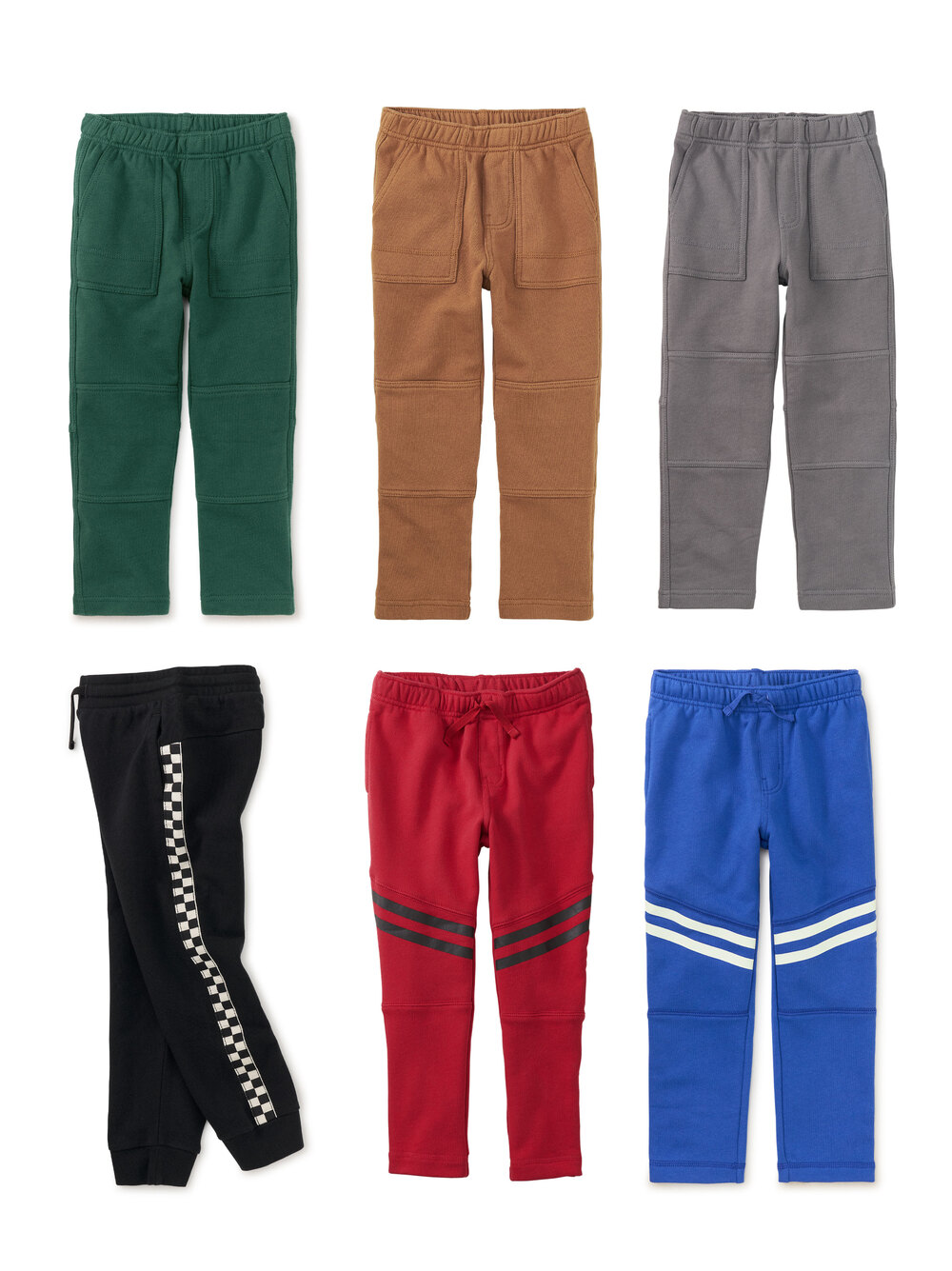 Six styles, endless adventures. This bundle brings together our bestselling Playwear Pants—beloved for their durability and reinforced knees—with a mix of sporty joggers designed for nonstop motion. Whether climbing, cartwheeling, or cruising on scooters, these pants are built to keep up. Soft French terry delivers comfort, elastic waistbands make changes easy, and bold stripe details add a pop of playtime energy. The ultimate stock-up set for parents, and the go-to drawer favorites for kids.