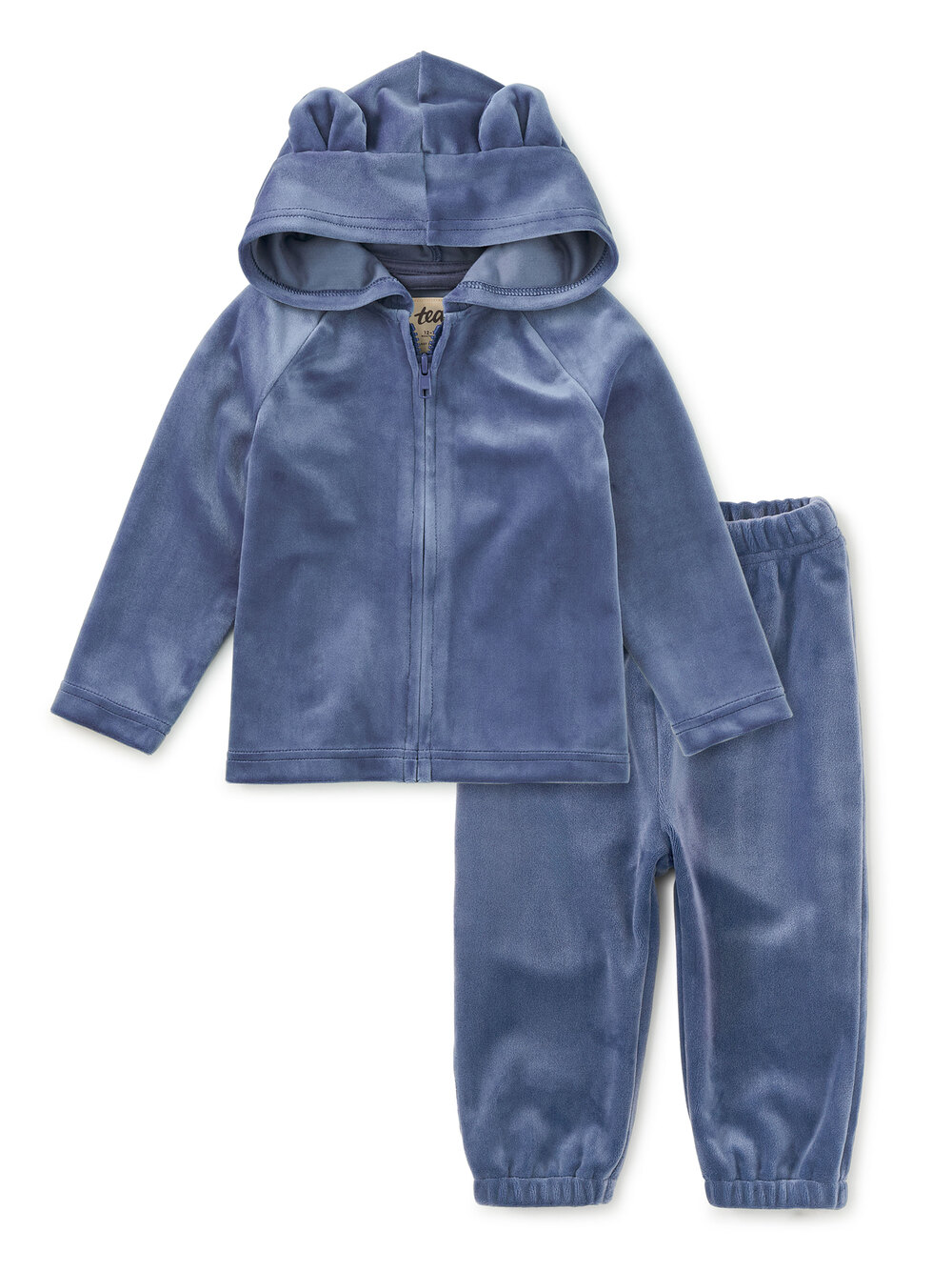Softness meets sweetness in this cozy velour set, complete with joggers and a hoodie topped with playful bear ears. Designed for easy dressing and all-day comfort, it’s perfect for snuggly stroller walks, tummy time, or cozy days at home. A thoughtful gift (and a parent favorite), this heirloom-quality set is made to be loved now and passed down later.