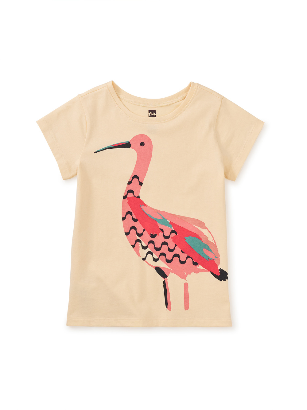 Fresh from our Brazil-inspired collection! This lovely hand-drawn Scarlet Ibis graphic is inspired by the illustration of waves in the Copacabana’s famed tiles. So spring-ready, our short sleeve tee pairs perfectly with Playwear Jeggings, Joggers, or a skirt. Made of high-quality 100% soft cotton that holds its color and shape, wash after wash. Above thigh length.
