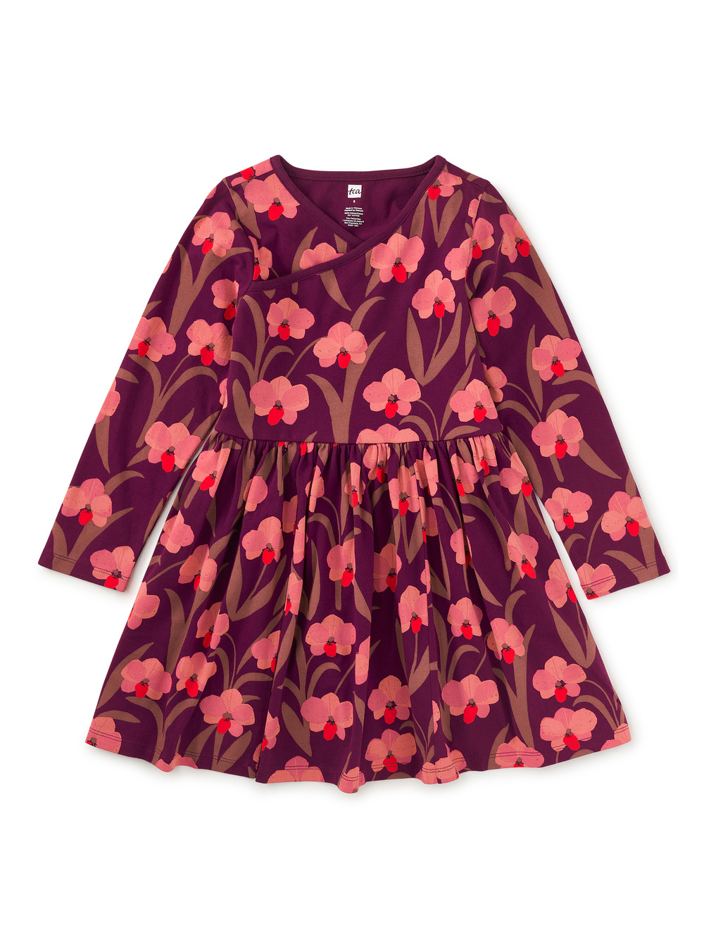 This soft and stylish Long Sleeve Wrap Neck Dress features a thoughtfully designed silhouette, combining a classic wrap neckline with a playful gathered skirt. A celebration of print and color, each design showcases original artwork by our in-house artists, inspired by their travels to South Korea--ranging from bold florals to storytelling scenes and nature motifs. Ideal for school days, special outings, and everything in between.