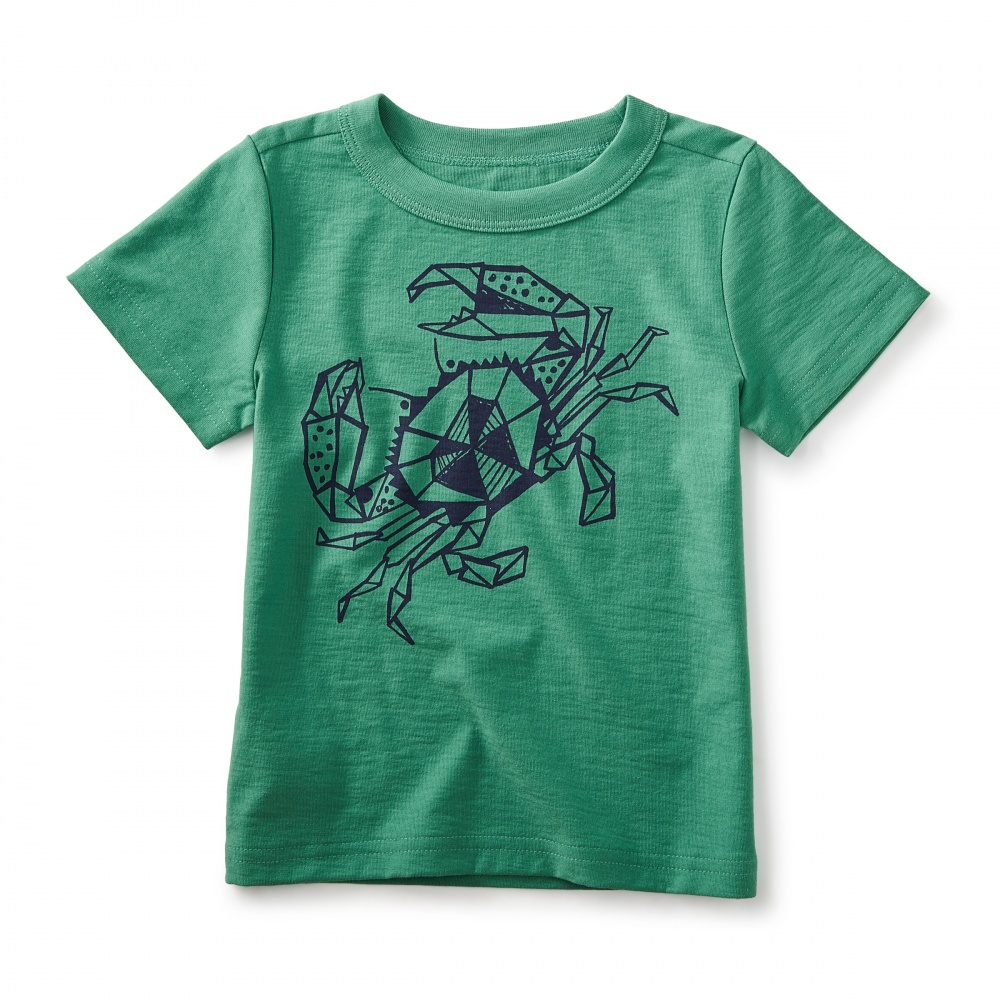 Great contrast of colors. This green is a beautiful shade and it is topped off with a cute crab.